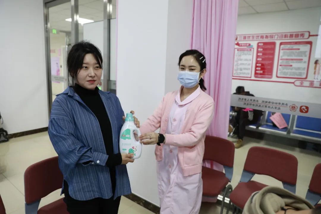 醫(yī)護人員為孕媽媽們送上精美禮品