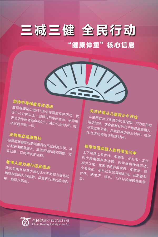 2025年9月是第19個“全民健康生活方式宣傳月”,活動主題是“培養(yǎng)健康生活方式,筑牢家庭健康基石”,進一步推進以“三減三健”(減鹽、減油、減糖,健康口腔、健康體重、健康骨骼)為主題,以體重管理為突破口的全民健康生活方式行動,傳播健康理念,普及科學知識,營造良好社會支持性環(huán)境。