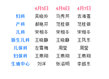承德市婦幼保健院2019年清明節(jié)假期專家出診安排