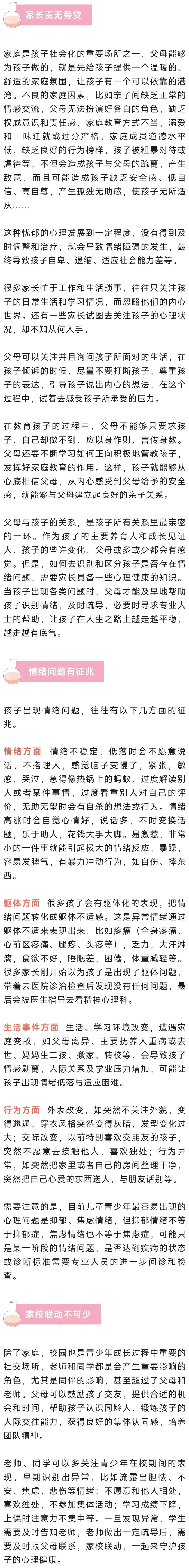 在17歲以下的兒童青少年中,至少有3000萬人受到各種情緒障礙和行為問題的困擾,大部分為抑郁、焦慮,可能伴隨自傷、自殺、沖動、暴力等行為問題。從這些數(shù)據(jù)可見,兒童的心理健康必須引起家長的重視。