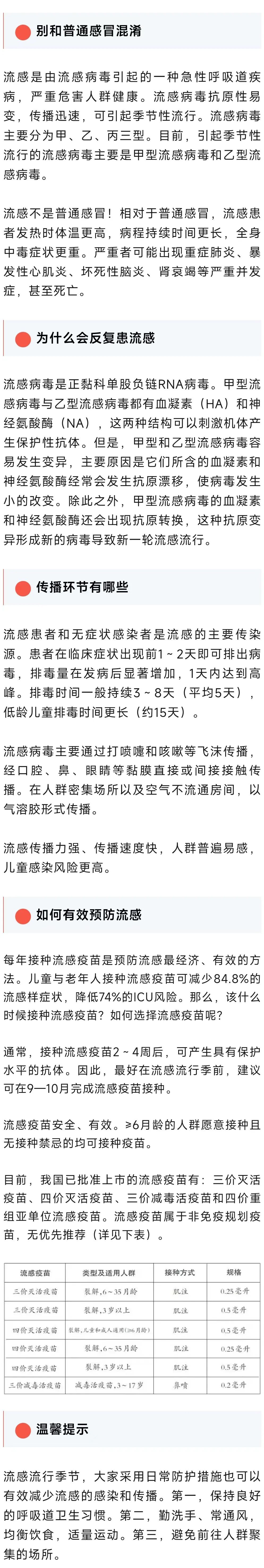 隨著開學(xué)季到來,同學(xué)們聚集性增加,學(xué)校發(fā)生常見呼吸道和腸道傳染病的風(fēng)險(xiǎn)隨之增加,如流感、水痘等常見傳染病也到了流行季節(jié)。加強(qiáng)傳染病防控對于減少學(xué)校聚集性疫情發(fā)生具有重要公共衛(wèi)生意義。學(xué)校常見傳染病大部分屬于疫苗可預(yù)防性疾病,也就是說,可通過接種疫苗來提高自身免疫力,預(yù)防相關(guān)病毒或細(xì)菌的侵襲。今天,我們重點(diǎn)談一談如何預(yù)防流感。流感病毒是上呼吸道感染的常見病因,全人群普遍易感,尤其是兒童和老年人。全球65歲以上人群流感罹患率7.2%,流感病毒感染死亡率高達(dá)224/10萬。兒童流感年感染率高達(dá)50%。流感每年發(fā)生的病例數(shù)變化取決于人群對流感病毒的易感性,以及暴發(fā)時(shí)該病毒的傳染性。