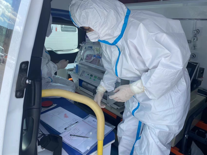? ? ? ?隨著新冠疫情在全國多地多點發(fā)生, 2022年4月承德市隆化縣也發(fā)現(xiàn)了陽性感染者,按照防控政策全縣實施封控、管控。4月10日上午8時許,承德市婦幼保健院新生兒科接到隆化縣婦幼保健院產(chǎn)科的電話“一位孕34周產(chǎn)婦,妊娠期高血壓,頻繁宮縮,馬上行急診剖宮產(chǎn),考慮出生后有窒息的風險,需要我院新生兒科醫(yī)護人員陪臺搶救”科室人員立即請示科主任是否出車,主任堅定的說:“劉軍書記、盧德林院長多次強調(diào),防控疫情不能延誤危重病人的救治,尤其是孕產(chǎn)婦及新生兒,必須出車,沒有疑問,做好防護,點對點走綠色通道,馬上發(fā)車”,十分鐘后,奔馳新生兒專用轉診救護車在司機左雷師傅的駕駛下,載著兩名醫(yī)護人員及所有轉診急救設備呼嘯出發(fā),直奔隆化縣城,為守護母嬰安全逆風而行!