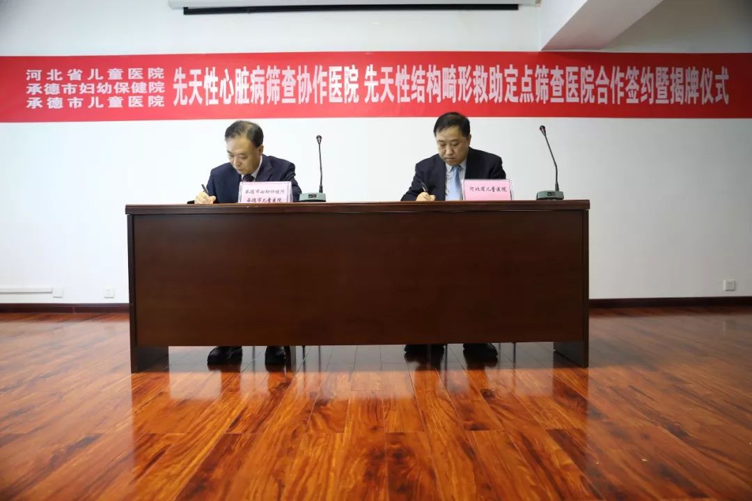 河北省兒童醫(yī)院副院長劉蘭平與承德市婦幼保健院 承德市兒童醫(yī)院院長劉軍共同簽署項(xiàng)目合作協(xié)議并揭牌。