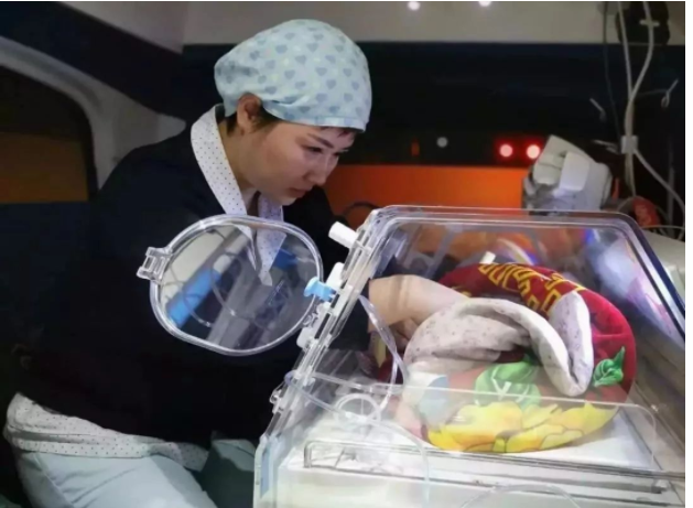 2018年一個盛夏的午后,王曉靜副主任沒來得及吃午飯就去XX醫(yī)院接診一個剛出生就心跳呼吸微弱的早產兒,患兒病情進展很快,路上當?shù)蒯t(yī)院的電話不停地催促,趕到醫(yī)院立即開始搶救,患兒周身皮膚青紫,呼吸心跳停止,無法轉院;曉靜副主任沒有放棄,她想只要有一絲希望,就要奮力搶救!于是她和當?shù)禺a科、兒科醫(yī)生一起進行心肺復蘇,氣管插管接復蘇囊加壓給氧、胸外心臟按壓、液體復蘇、藥物……,當時正值夏季,大家被輻射臺的暖燈烤得大汗淋漓,胸外按壓的手也累得要抽筋了,但只要有一點微弱的心跳,大家就一直不停地搶救,終于心跳、呼吸有了,大家稍稍松一口氣,突然心跳又停了,又繼續(xù)搶救,反反復復;家屬幾乎要簽字放棄了,但是大家還是繼續(xù)堅持,搶救持續(xù)約40分鐘后,患兒終于心率穩(wěn)定可以轉診了,到達新生兒科把患兒安置好后,醫(yī)生護士們才感到饑腸轆轆、疲憊不堪。這樣的故事經(jīng)常上演著,不同的只是今天主角是你,明天主角是我,后天主角是她……,即使是春節(jié)期間的除夕夜及大年初一轉診工作沒有停歇,2019年春節(jié),新生兒轉診最繁忙,醫(yī)護人員放棄了節(jié)假日陪伴家人的時間,毫無怨言,披星戴月的完成著一次次生命的接力,科主任護士長為此非常心疼這些醫(yī)護人員,但是保障患兒的生命安全是我們的責任,為兄弟醫(yī)院保駕護航更是我們的擔當。