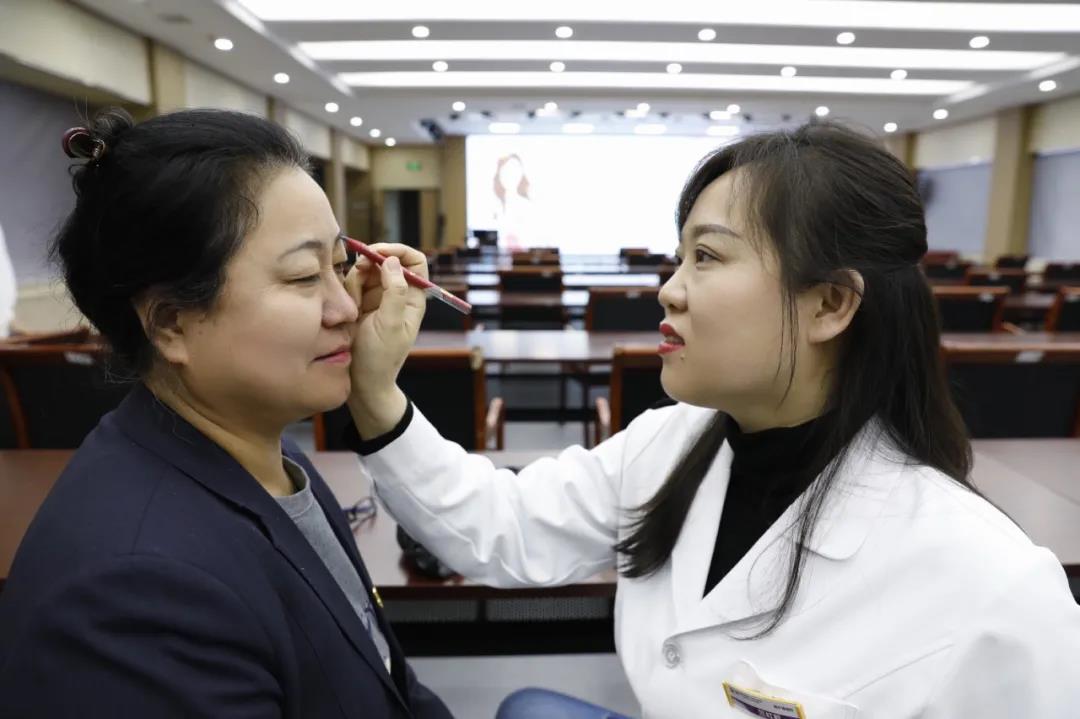 隨后,醫(yī)療美容科張殿堯主任帶領(lǐng)醫(yī)師團(tuán)隊(duì)進(jìn)行現(xiàn)場“一對一”面診, 紋繡師“手把手”講解修眉畫眉。現(xiàn)場女士們對祛斑、祛痘、美白換膚、紋繡類、抗衰類的治療方法產(chǎn)生了濃厚的興趣,紛紛向醫(yī)師們咨詢各種問題。醫(yī)生們對皮膚有問題的女士提供了生活方面的建議和治療方向。