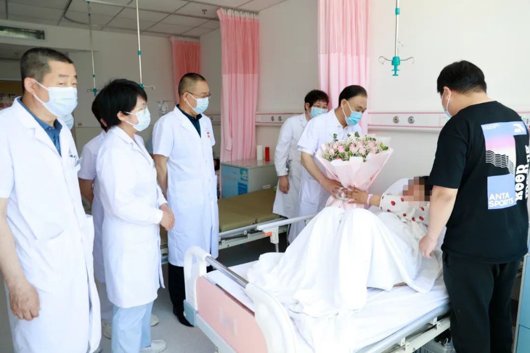 ? ? ? ?這是承德市婦幼保健院 承德市兒童醫(yī)院搬入新院以來接生的首例三胞胎。劉軍書記、盧德林院長、孫鵬副院長、王鳳東副院長在醫(yī)務(wù)科、護(hù)理部陪同下,第一時間來到病房,向張女士送去鮮花和祝福。
