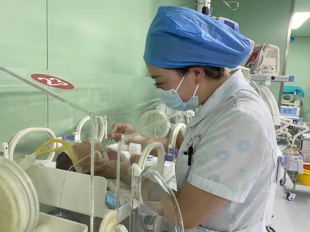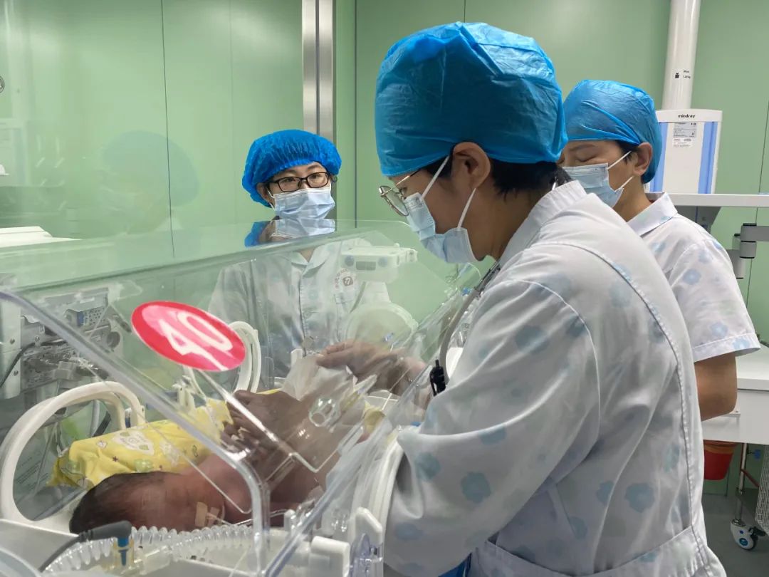 ? ? ? ?為了保證每一個寶寶在出生時均能得到積極地救治,新生兒科派出復(fù)蘇經(jīng)驗(yàn)豐富的2名副主任醫(yī)師及2名高年資護(hù)士組成救治團(tuán)隊(duì),提前來到手術(shù)室做好復(fù)蘇準(zhǔn)備。伴隨著一聲聲嬰兒的啼哭,15:33、15:34、15:35三胞胎姐弟順利降生。長女經(jīng)過初步復(fù)蘇后出現(xiàn)哭聲,二子及三子的呼吸微弱,皮膚青紫,生命岌岌可危,復(fù)蘇團(tuán)隊(duì)立即實(shí)施積極有效的復(fù)蘇,初步復(fù)蘇、氣管插管、正壓通氣,很快小哥倆面色轉(zhuǎn)紅潤,自主呼吸增強(qiáng),在T組合正壓通氣下轉(zhuǎn)運(yùn)至新生兒科重癥監(jiān)護(hù)病房。忙而不亂的搶救措施,有條不紊的護(hù)理操作,在醫(yī)務(wù)人員24小時貼心照顧下,“吉祥三寶”三胞胎病情平穩(wěn),在保溫箱里一天天茁壯成長。